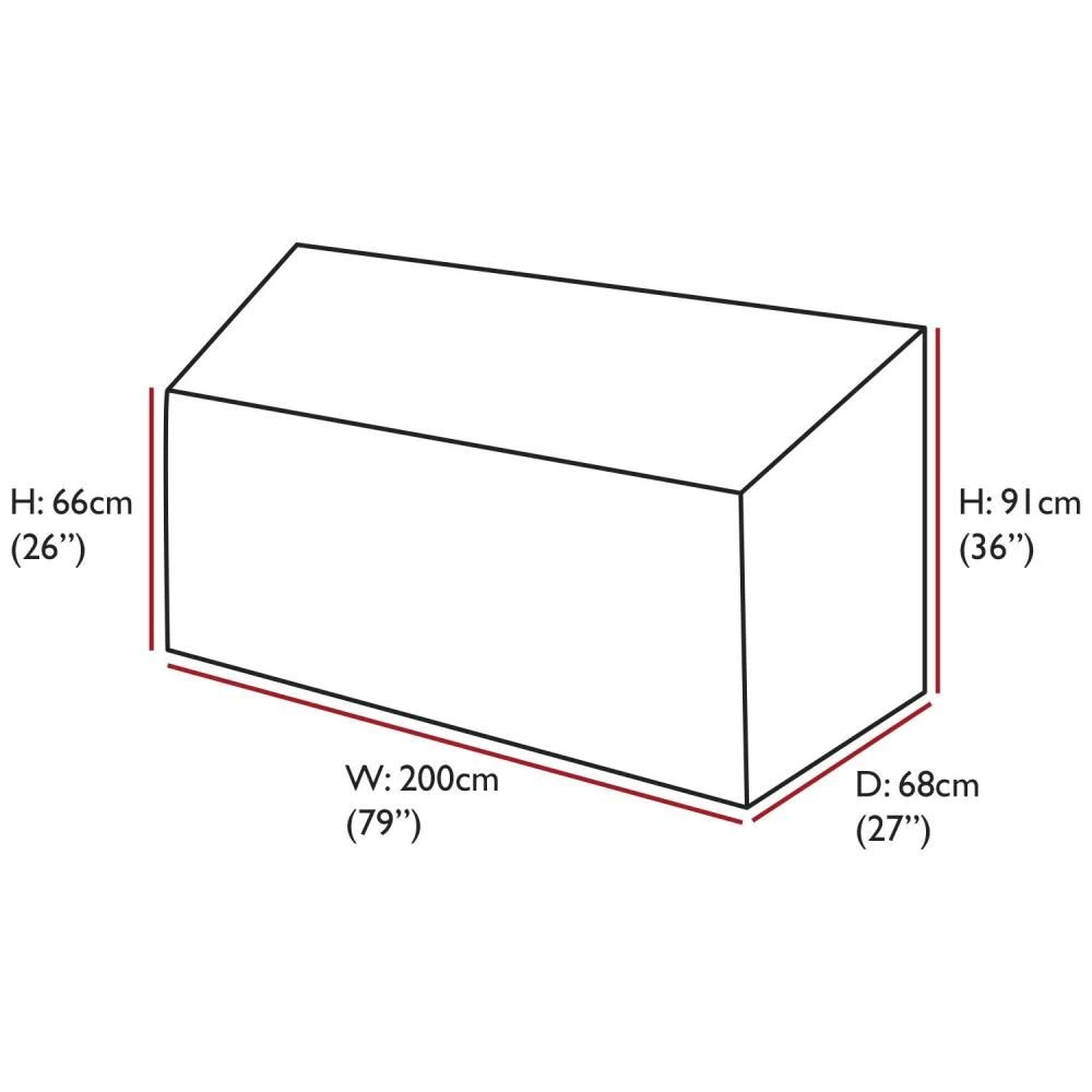 - SIZE – Designed to fit a 4-seater bench, Width 200cm, Depth 68cm and heights of 66cm at the front 91cm at the back.